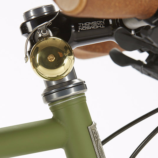 Built to replace a 10mm 1 1/8" headset spacer, the Alexander Graham is a classy addition to your bicycle without sacrificing any precious handlebar space. There's nothing like the strong, clear sound of a solid brass bell to announce your presence to inline skaters, stroller pushers, joggers and Segway™ jockeys.