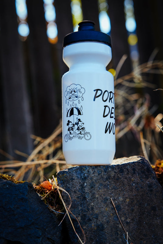 Kick it old-school black and white style with this Jake Tong-designed bottle. It features a pair of mice proving that all days are indeed nice days, even in the PNW rain. Rock it on your tandem or non-tandem, rain or shine!