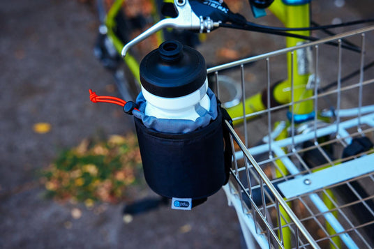 A drink holder that cleanly mounts to your front basket to conserve bar space.