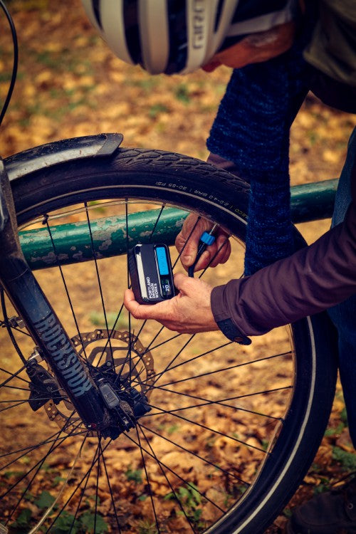 A high-quality, compact electric bike pump with all of the features and accessories you need to top off your tires before a ride or fix a flat on the go.